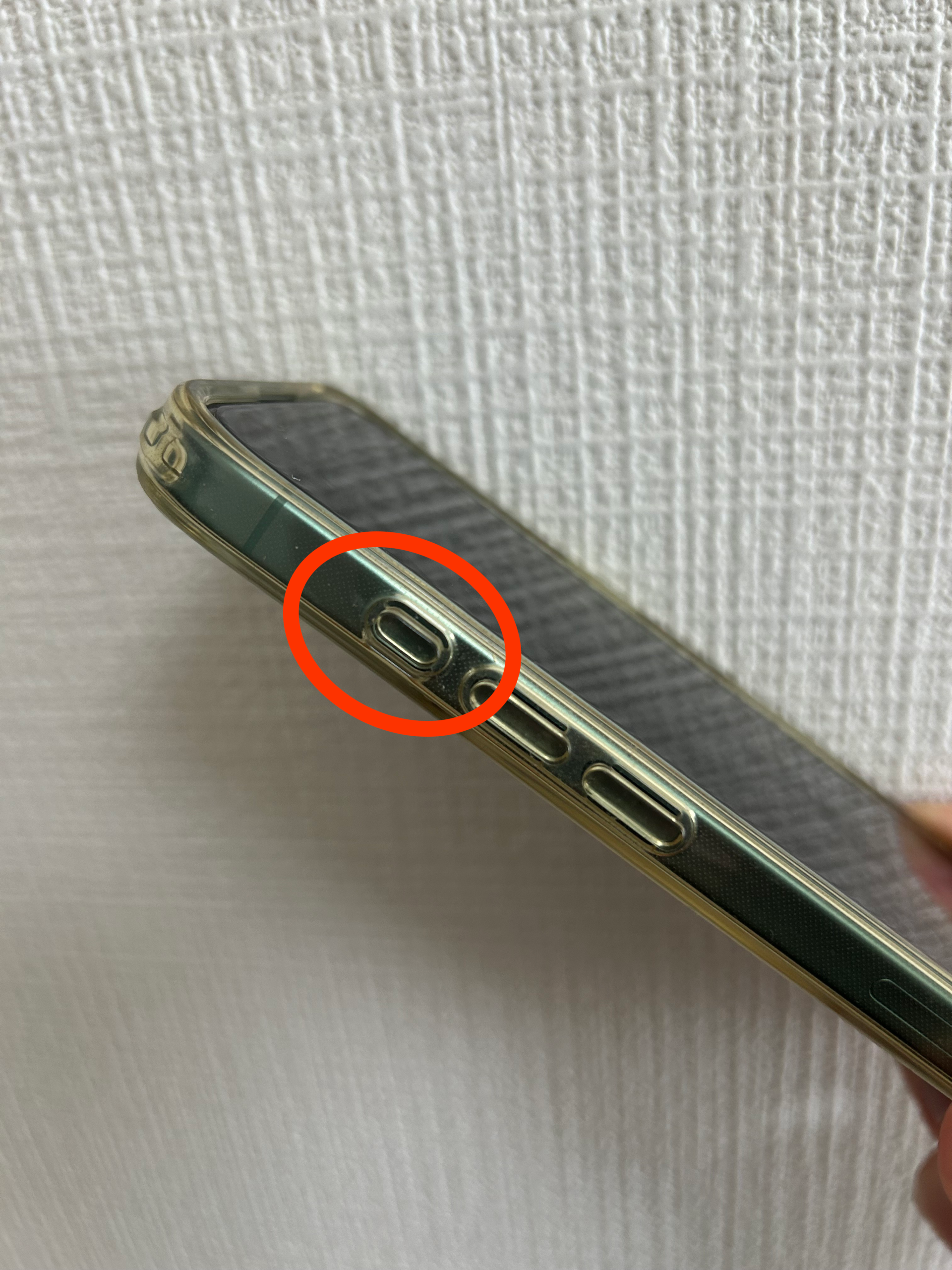 1、↑iPhoneの左側面の赤丸内のボタンのオレンジが見えている状態ですと「KIKASETE」の音声が流れません。